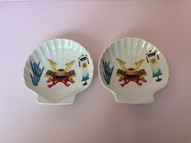 ポーセラーツ…こどもの日のシェルプレート(2枚セット)です♪ こどもの日のパーティーにいかがでしょう? サイズは、約11×10.5×1.5センチ 小皿としてはもちろん、小物入れとしても使えると思います。 白磁の性質上、黒点や小さな穴、部分的な膨らみ、薄い変色などがあるものもございます。気にならない方にお願いします。 ハンドメイドですので、市販のものほど完璧ではありません。ご理解いただける方ににご購入をお願いいたします。 他のサイトでも出品しておりますので、売り切れになることもございますが、ご了承ください。 【ポーセラーツとは】 ポーセラーツは…真っ白な磁器に、転写紙(シールのような紙)を貼ったものを窯で焼いて、オリジナルの食器やインテリアを作ることができるハンドクラフトです(*^_^*)