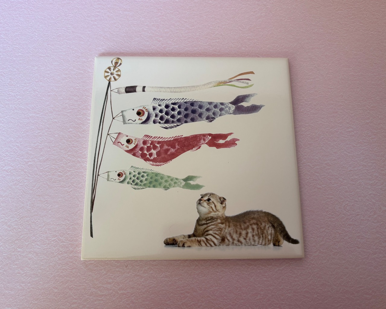ポーセラーツのタイルアート(大)鯉のぼりと猫です♪