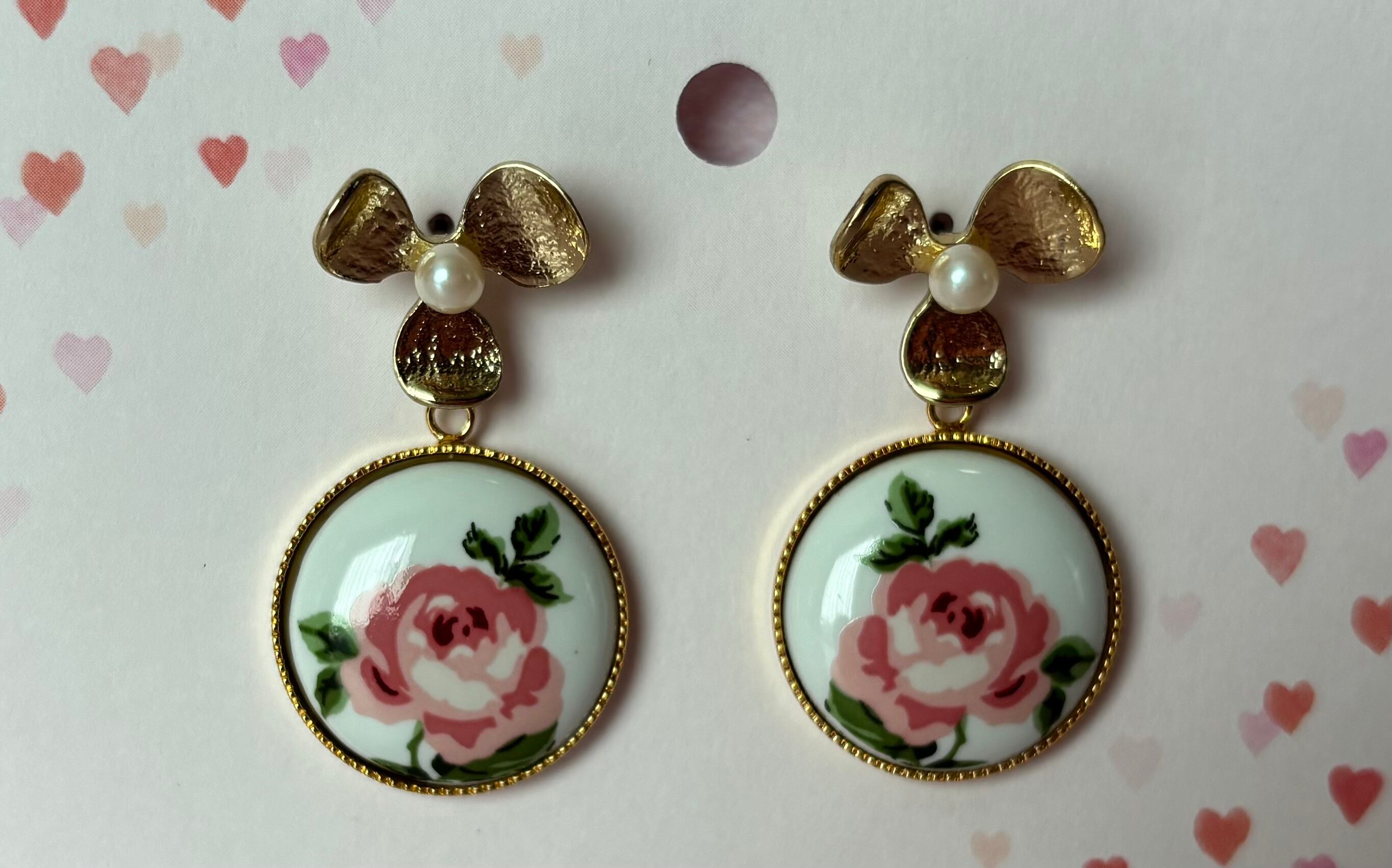 ポーセラーツ…ローズのスイングピアスです♪