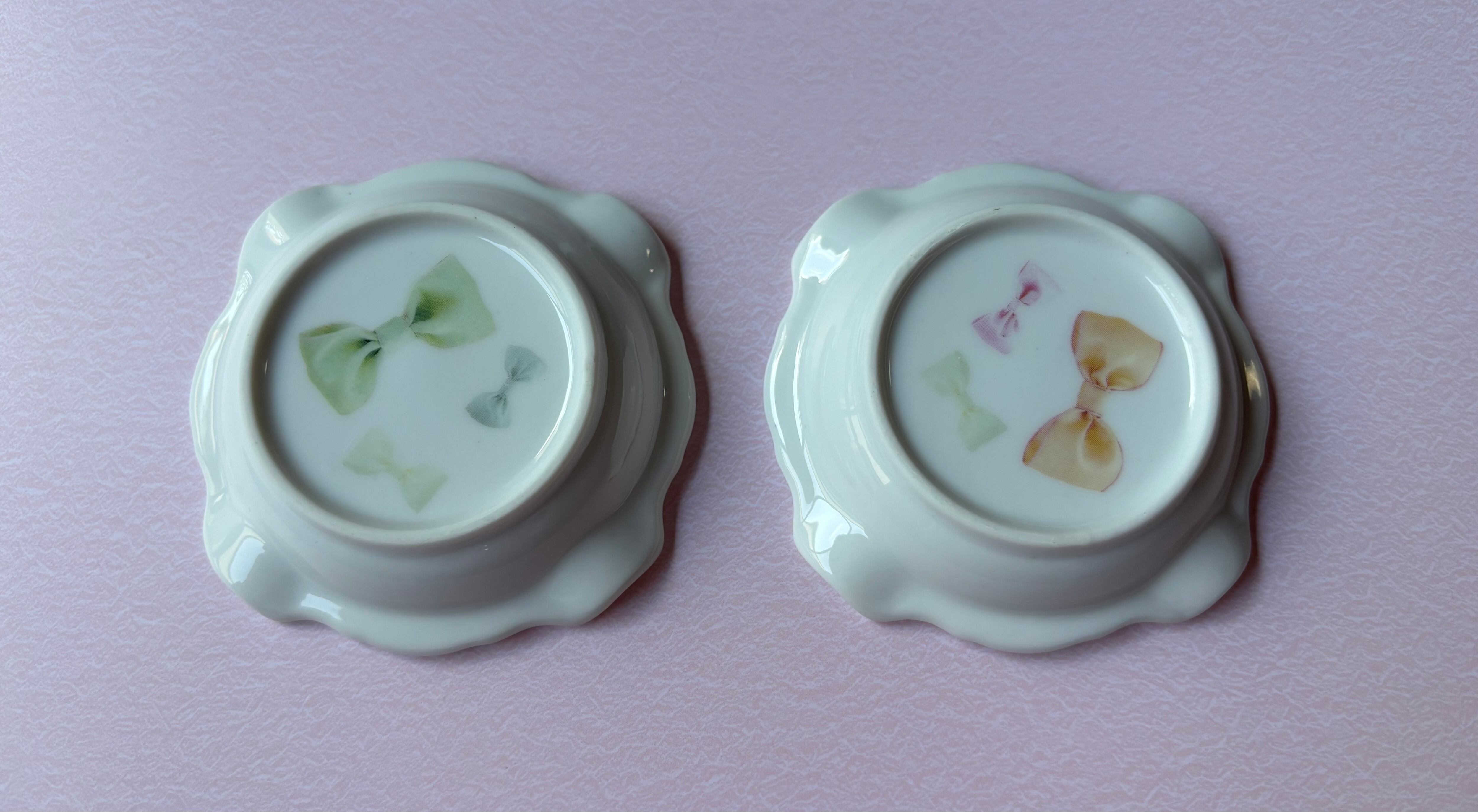 【半額】ポーセラーツ…小さいリボンの小皿(2枚セット)です♪