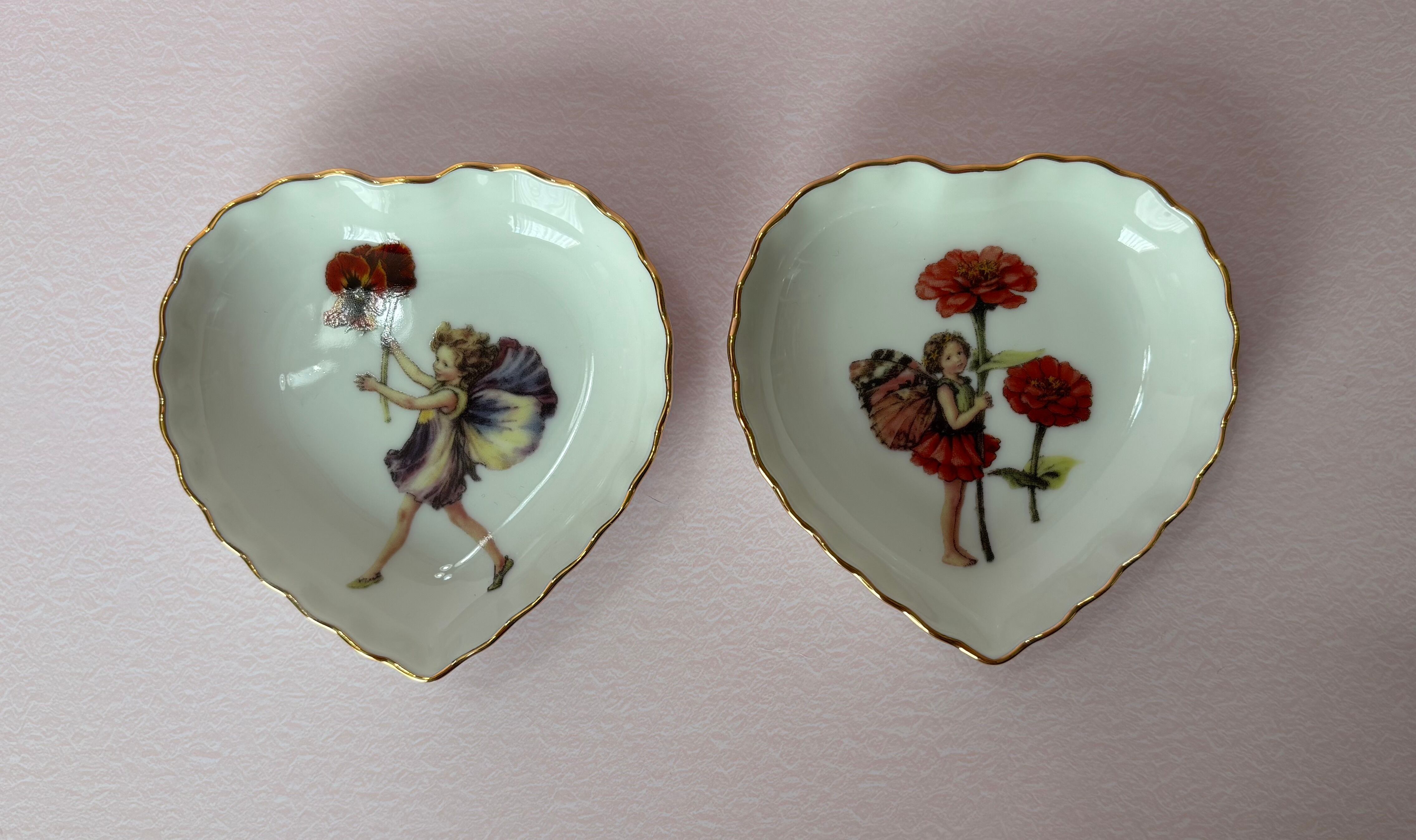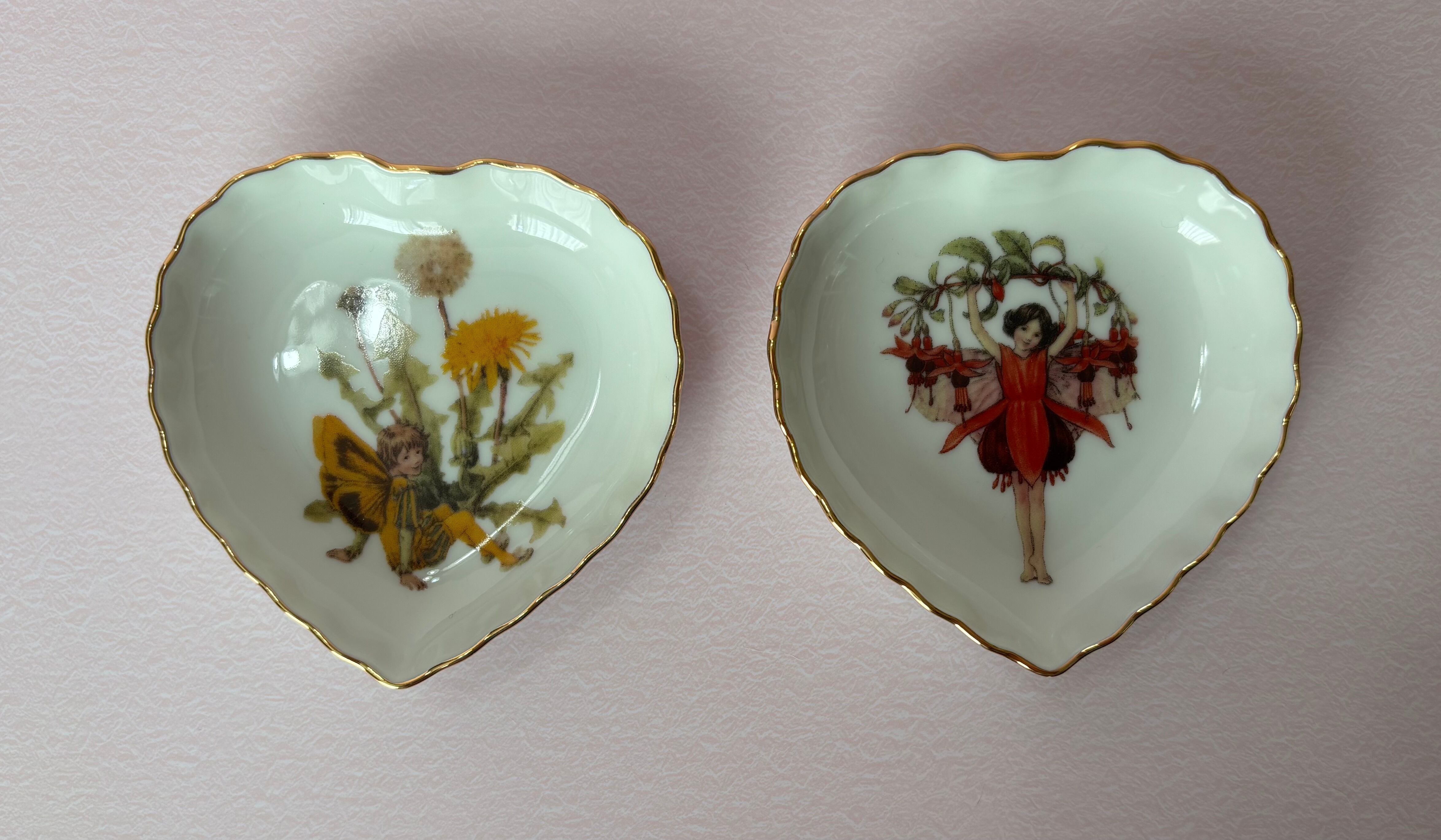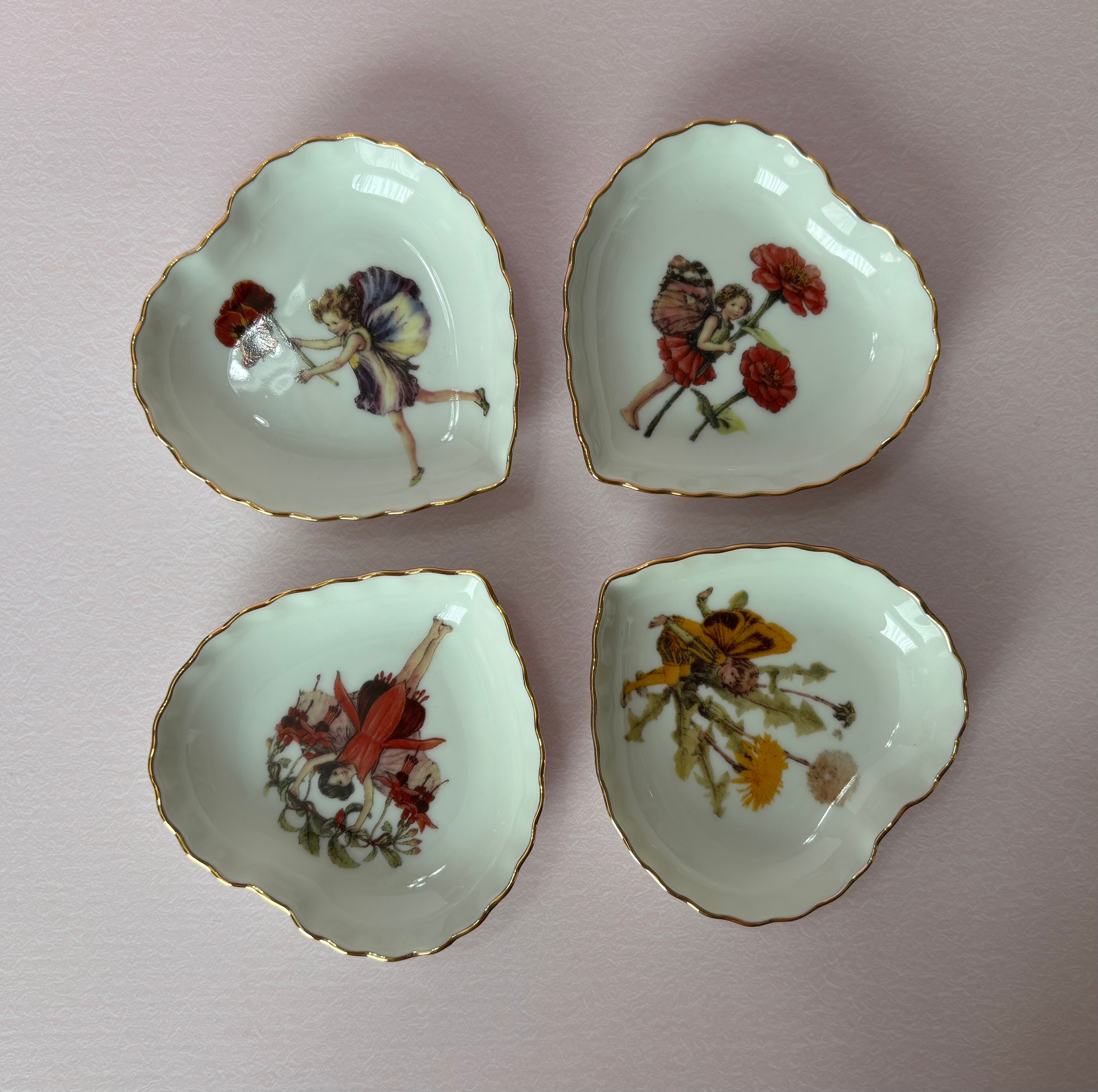 ポーセラーツ…妖精さんのハートの小皿(金付き)4枚セットです♪