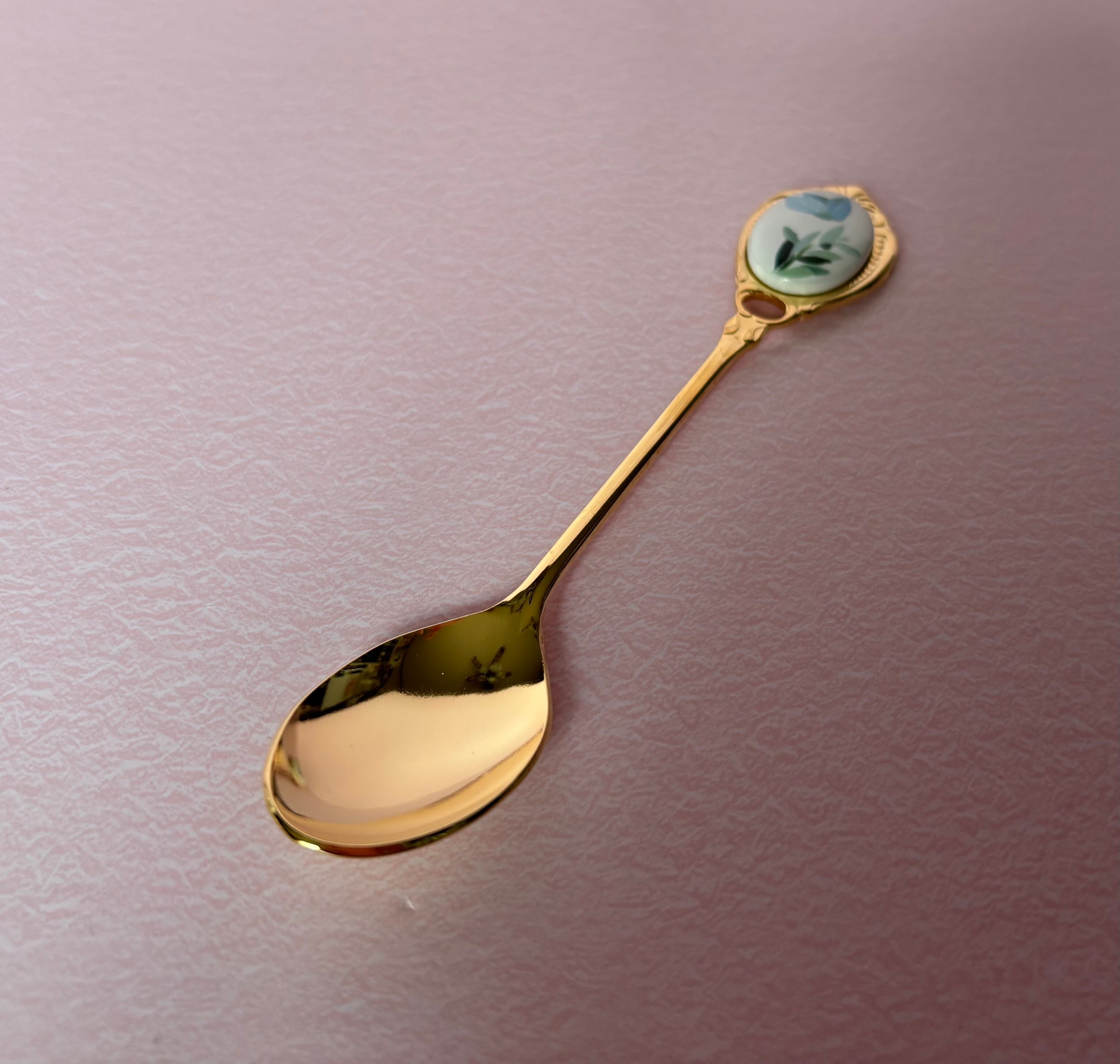 ポーセラーツ…ブルーの花のスプーン⭐︎ゴールドです♪