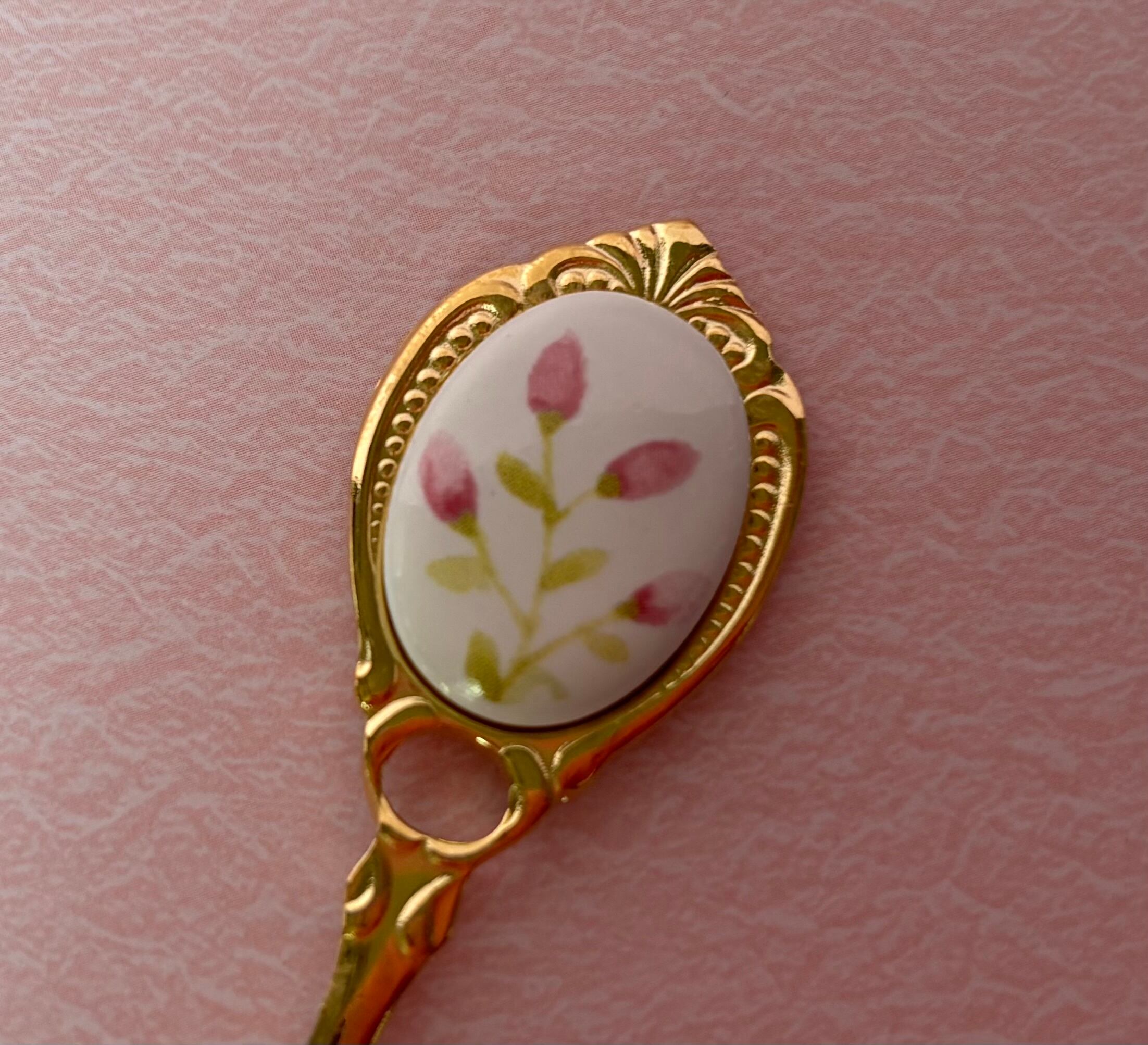 ポーセラーツ…ピンクのつぼみのスプーン⭐︎ゴールドです♪