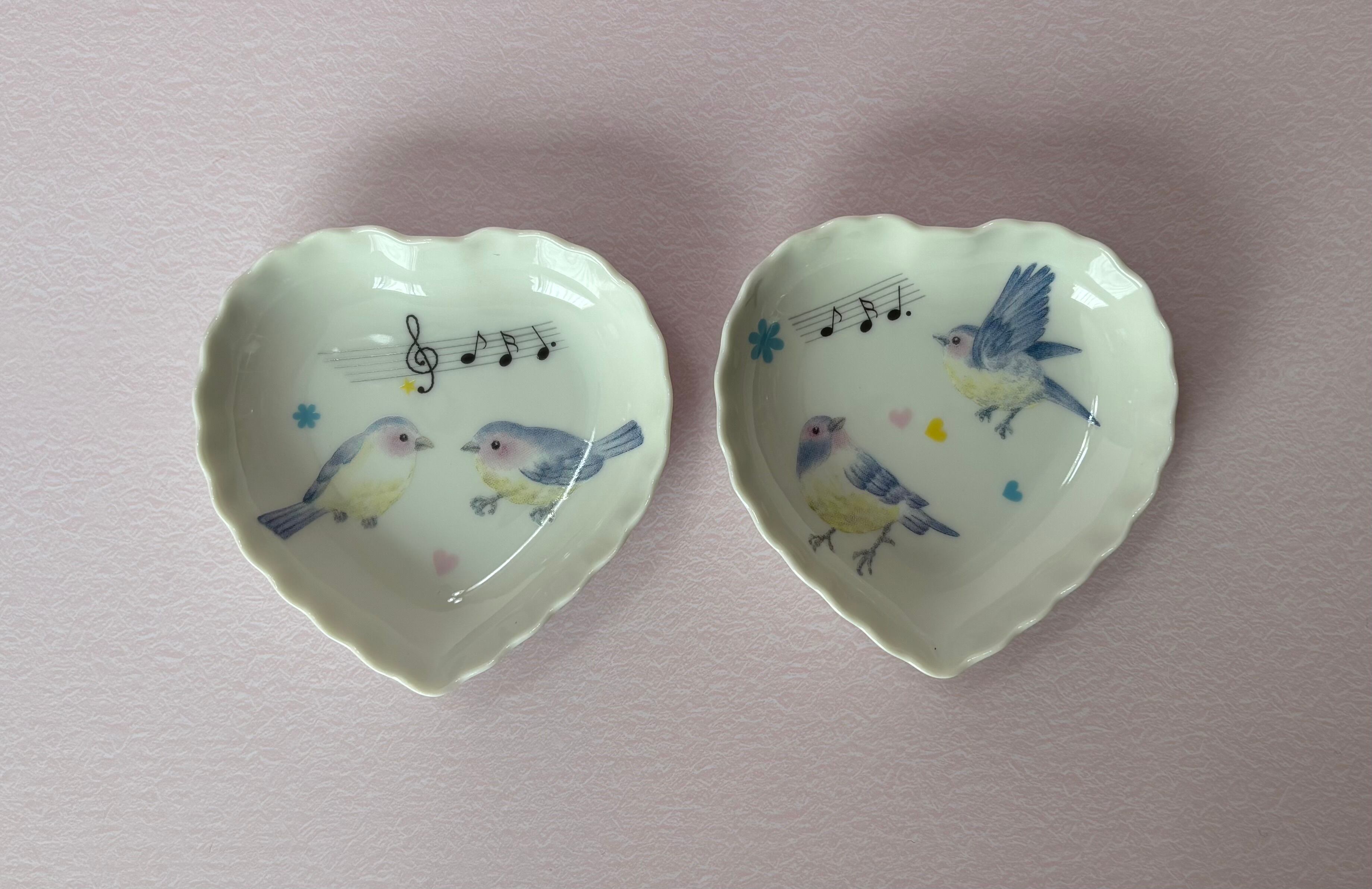 ポーセラーツ…鳥さんのハートの小皿2枚セット①です♪