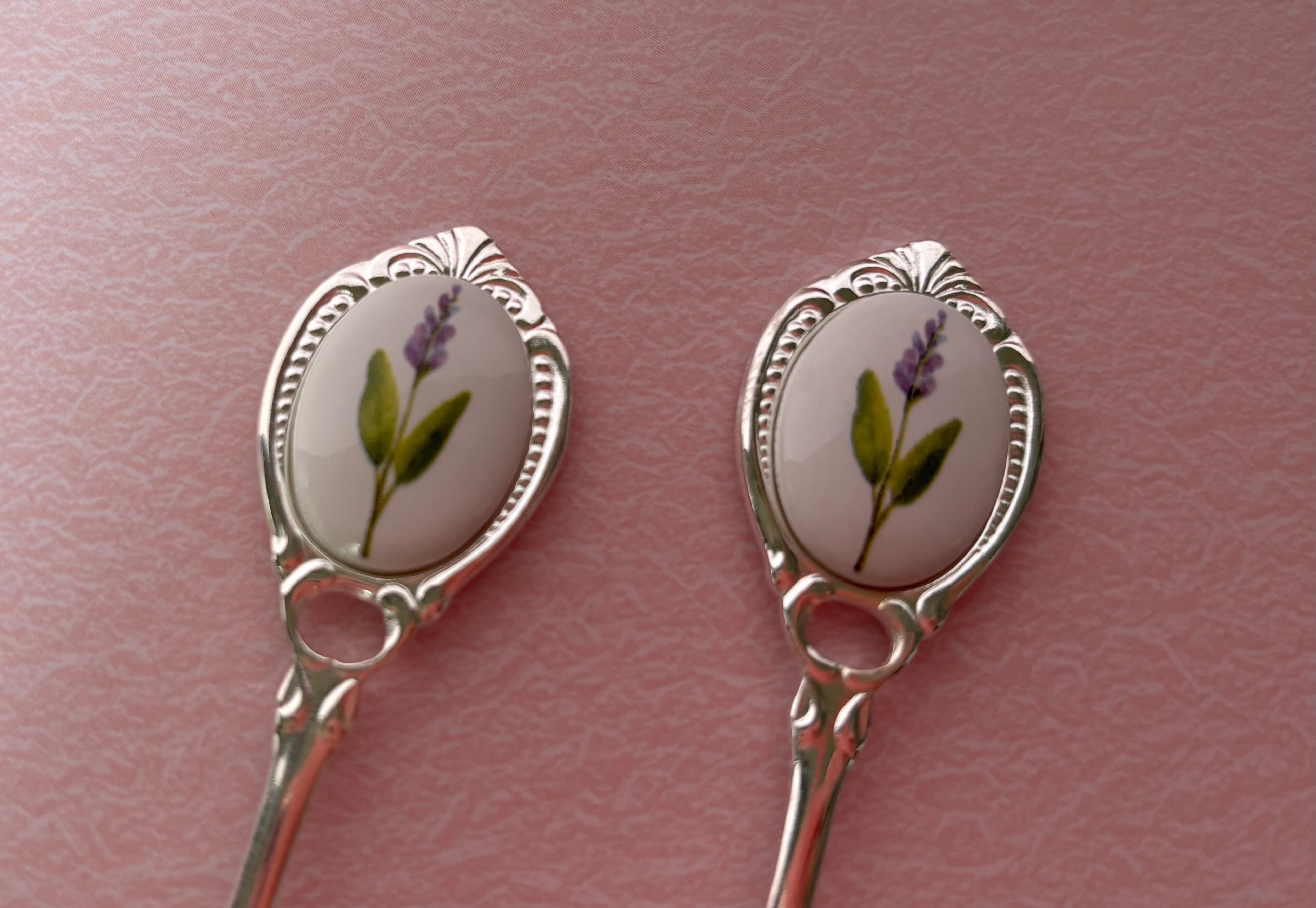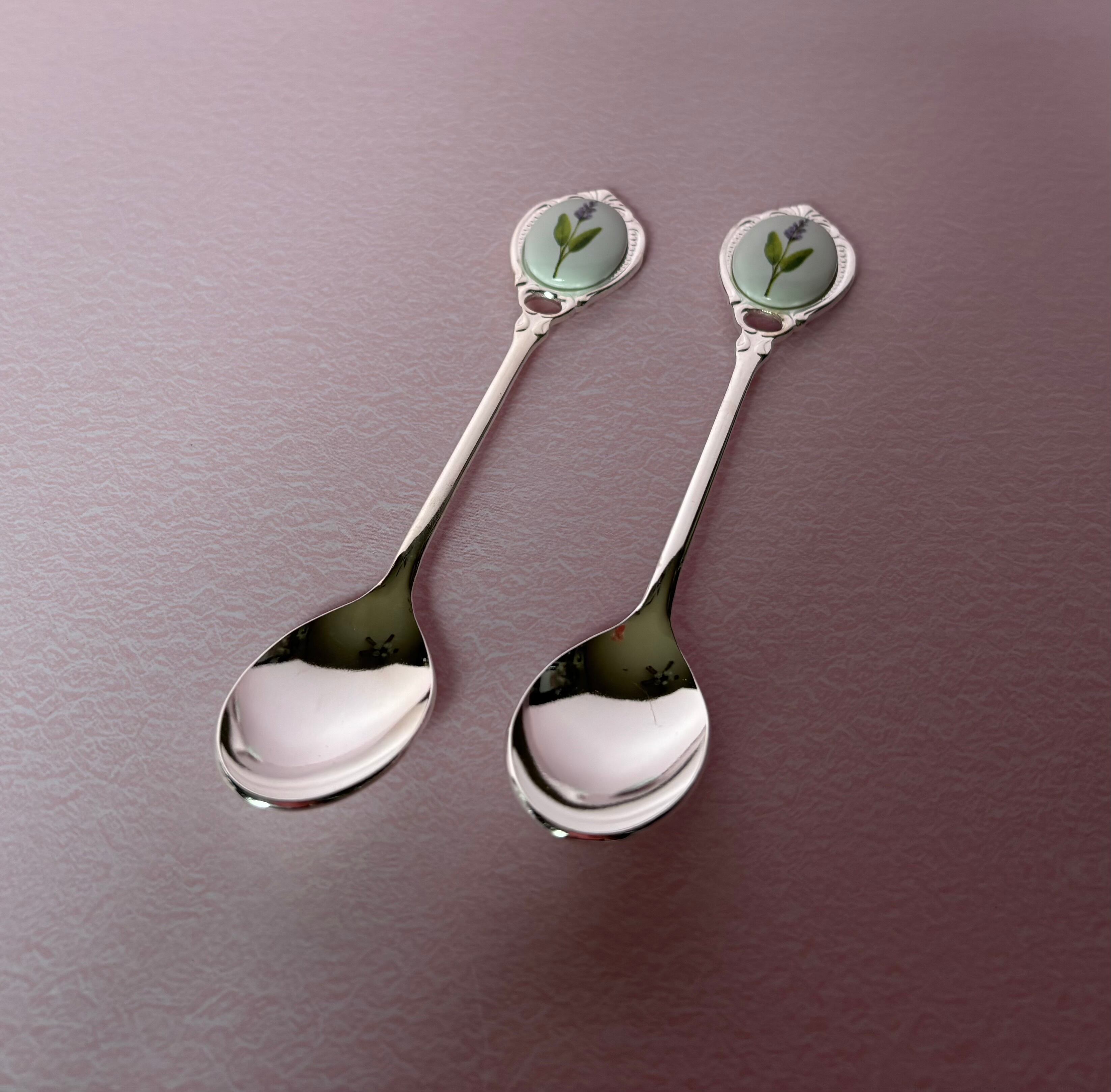 ポーセラーツ…ラベンダー(かな?)のスプーン⭐︎2本セット⭐︎シルバーです♪