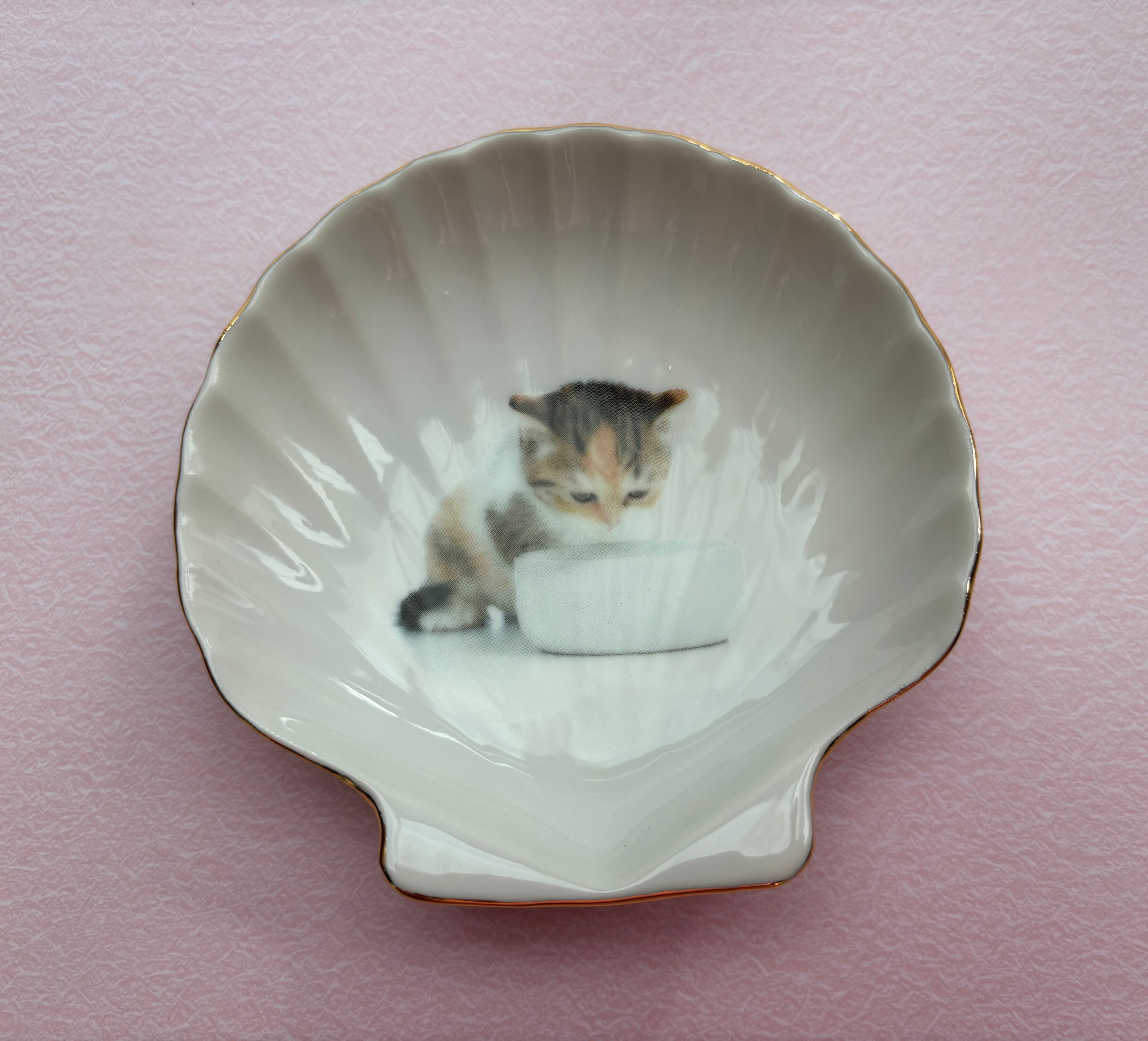ポーセラーツ…猫ちゃんシェルの小皿⭐︎金彩つき①