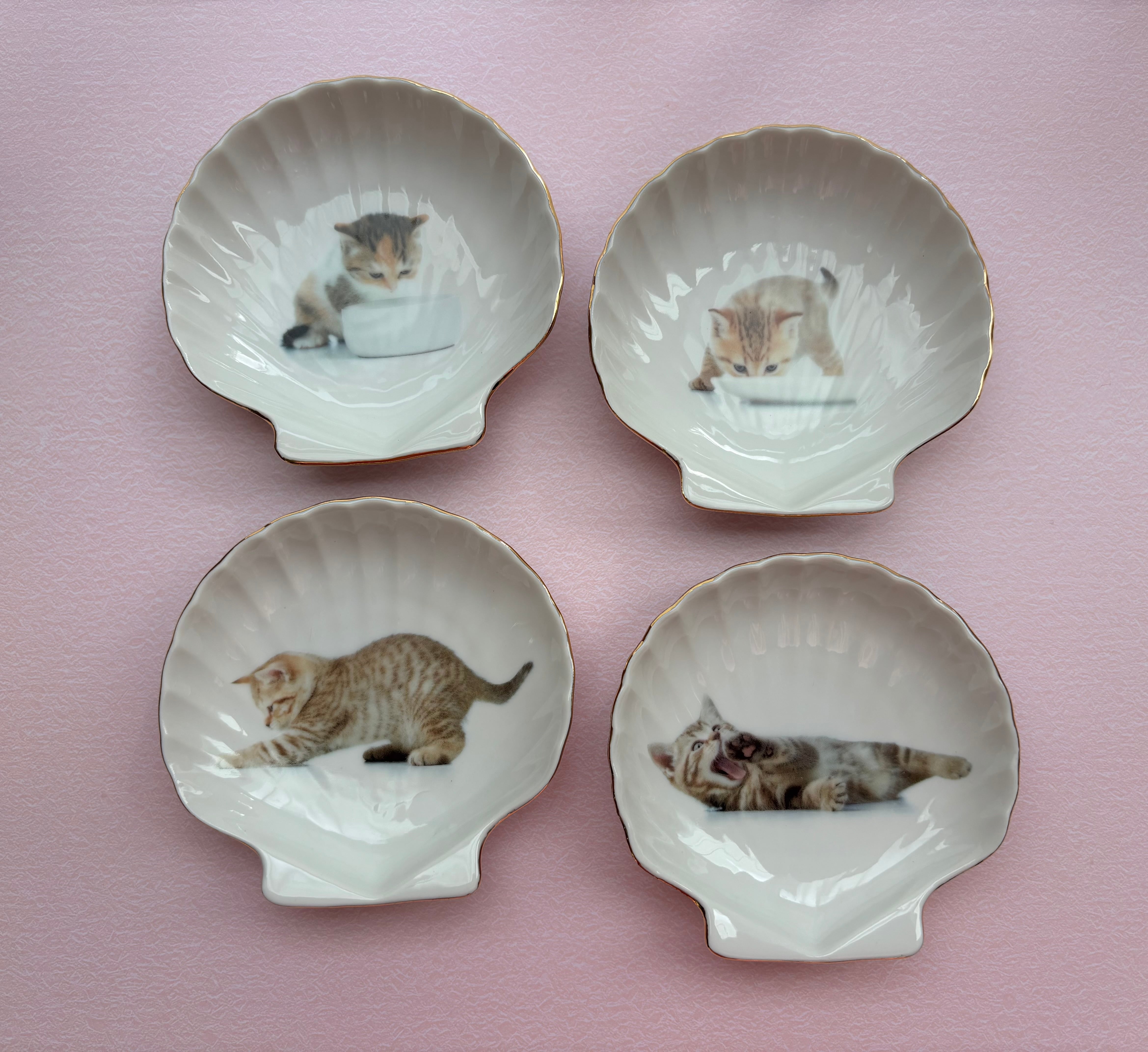 ポーセラーツ…猫ちゃんシェルの小皿⭐︎金彩つき②