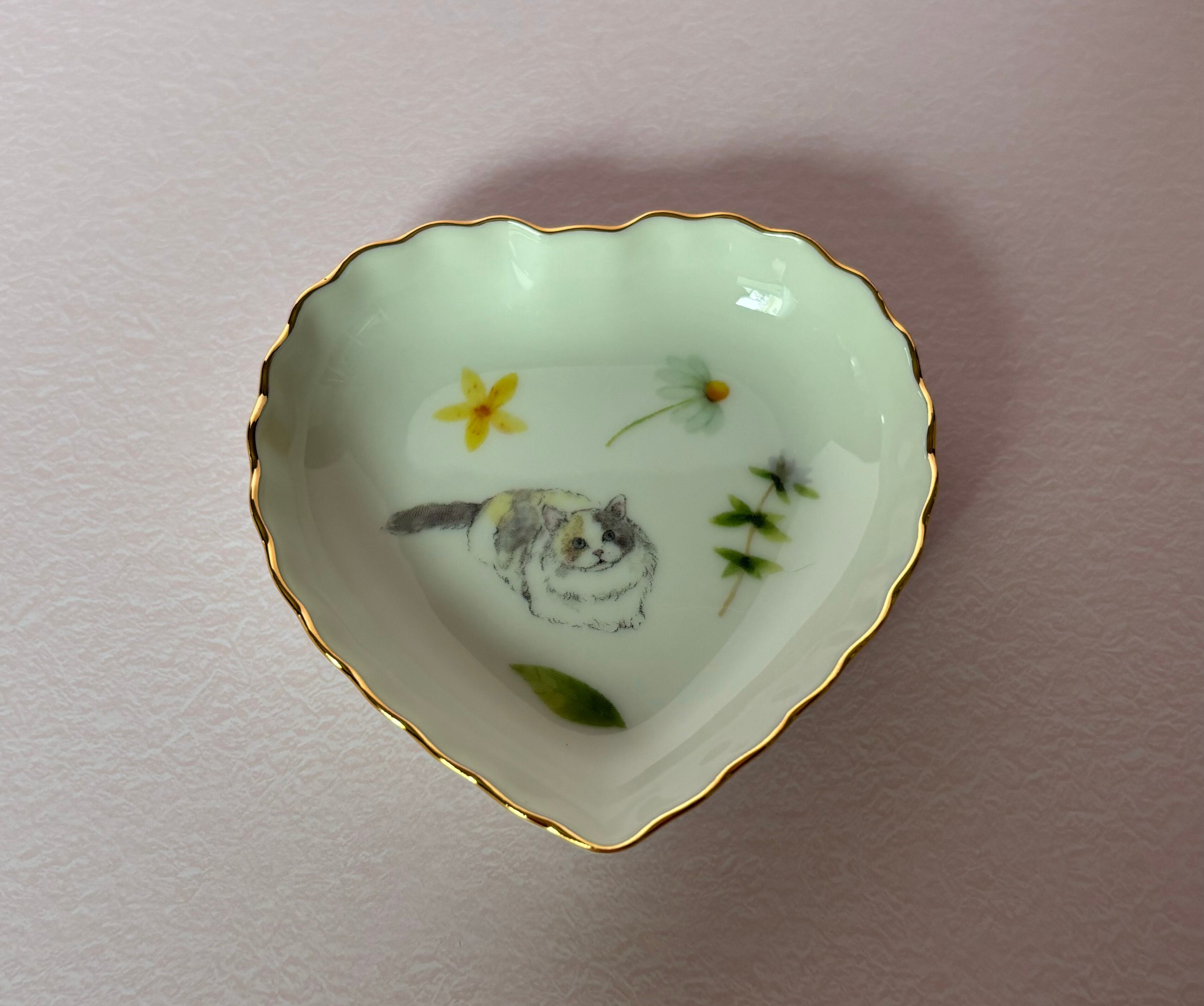 ポーセラーツ…猫ちゃんのハート型小皿です♪