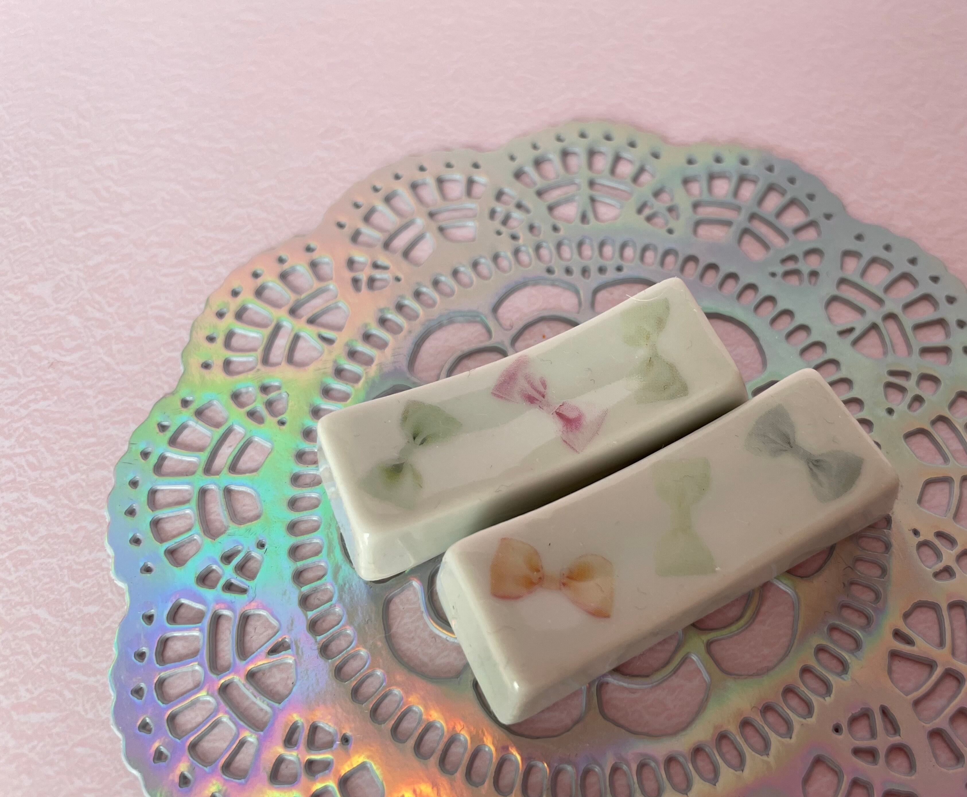 ポーセラーツの…リボン柄の箸置きの2点セットです♪
