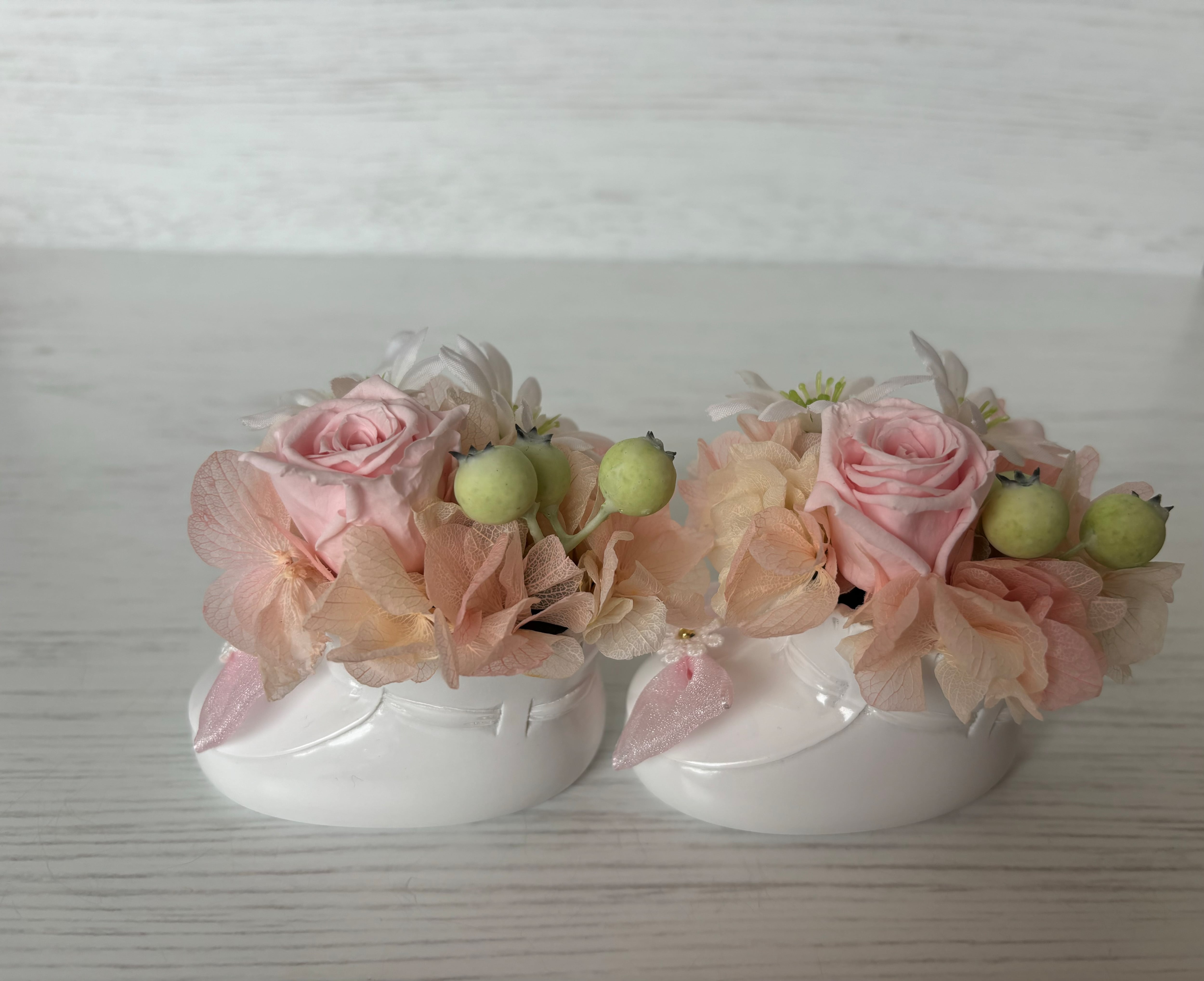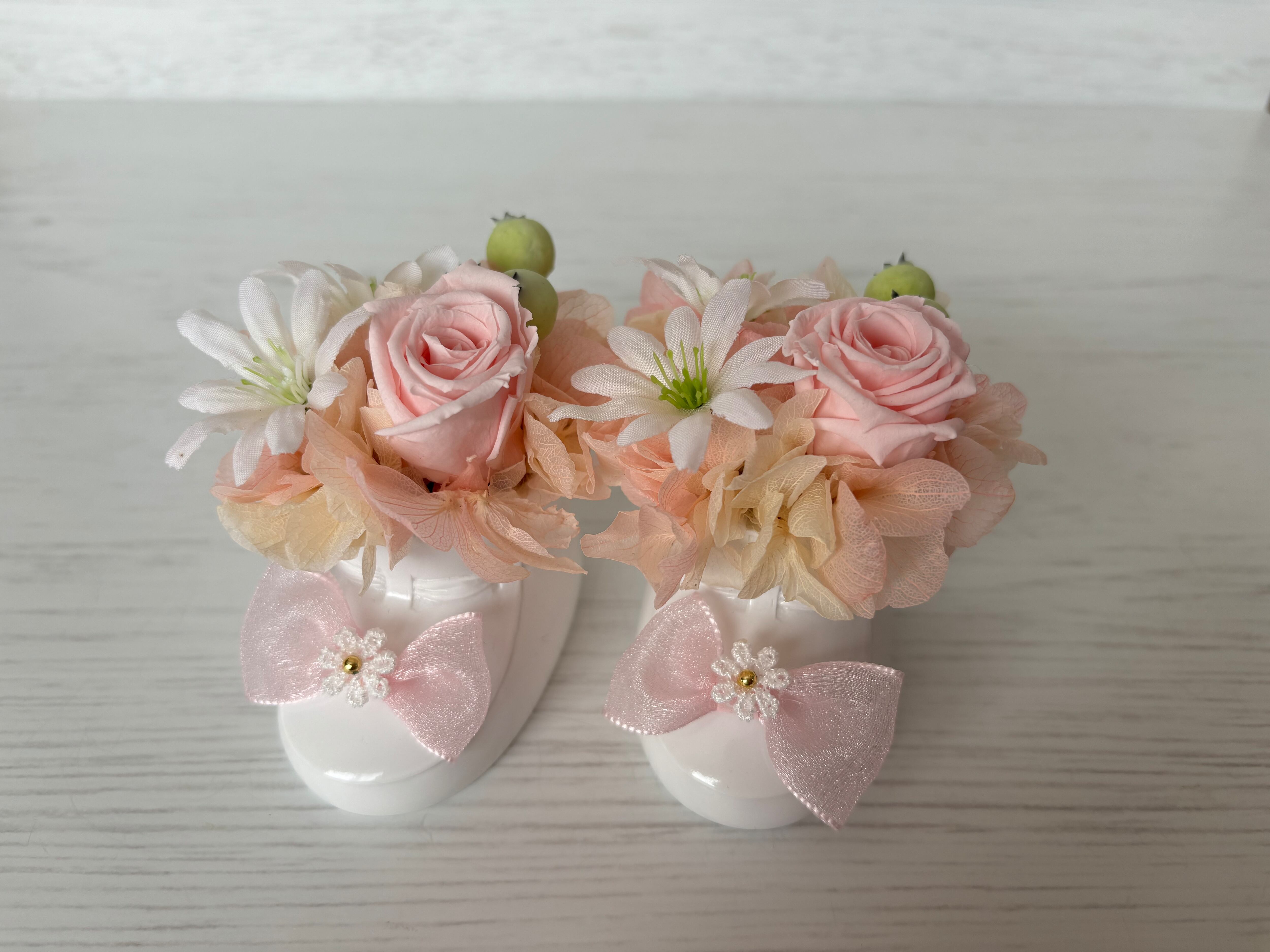 プリザーブドフラワーを使ったベビーシューズアレンジです♪